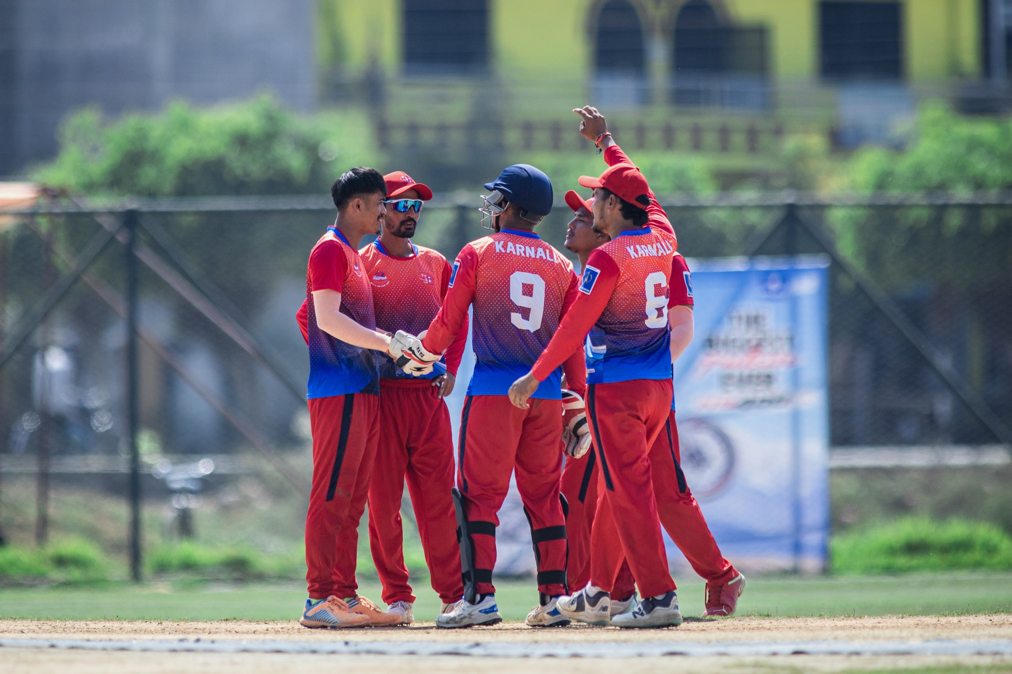 आकाश त्रिपाटी २१ तथा मनिष थापा १६ रनमा आउट भए । कर्णालीका लागि दिनेश अधिकारी र दीपेन्द्र रावतले समान ३, प्रकास जैशीले २ तथा सुनिल धमला र कप्तान दिवान पुनले समान १ विकेट लिए ।