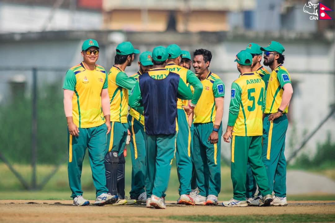 कप्तान विनोद भण्डारी १ रनमा र इमरान शेख १२ रनमा आउट भए। २ विकेटको नोक्सानीमा आर्मीले ३५ रन मात्र जोडेको थियो।