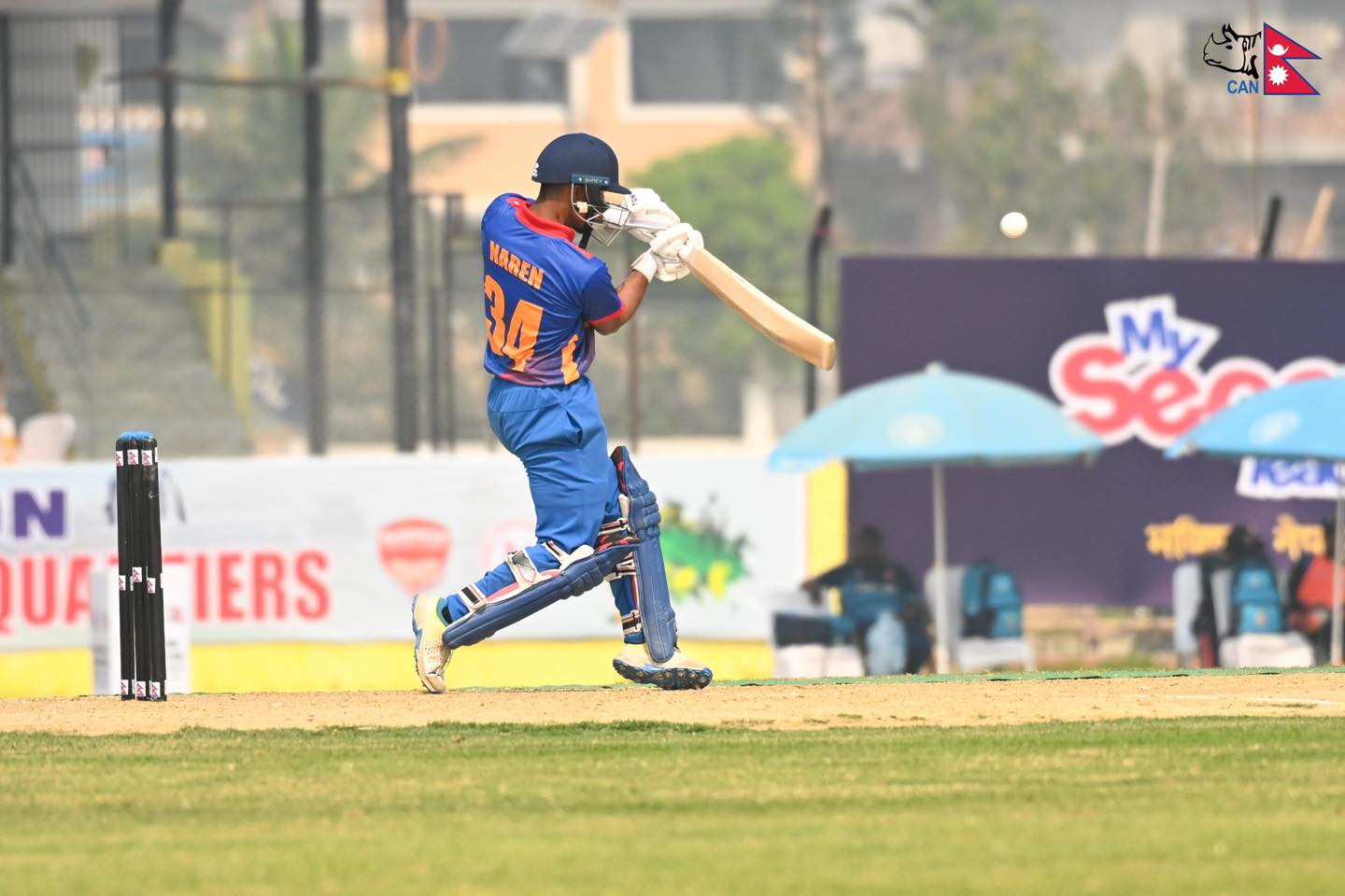 अशोक धामी १९ बलमा १ चौका र २ छक्काको सहयोगमा १९ रनमा आउट भए । ओपनर सोहेल कुवँर ११ रनमा आउट हुँदा नेपाली युवा टोलीका अन्य ब्याटरले दोहोरो अंकमा रन बनाउँन सकेनन् ।