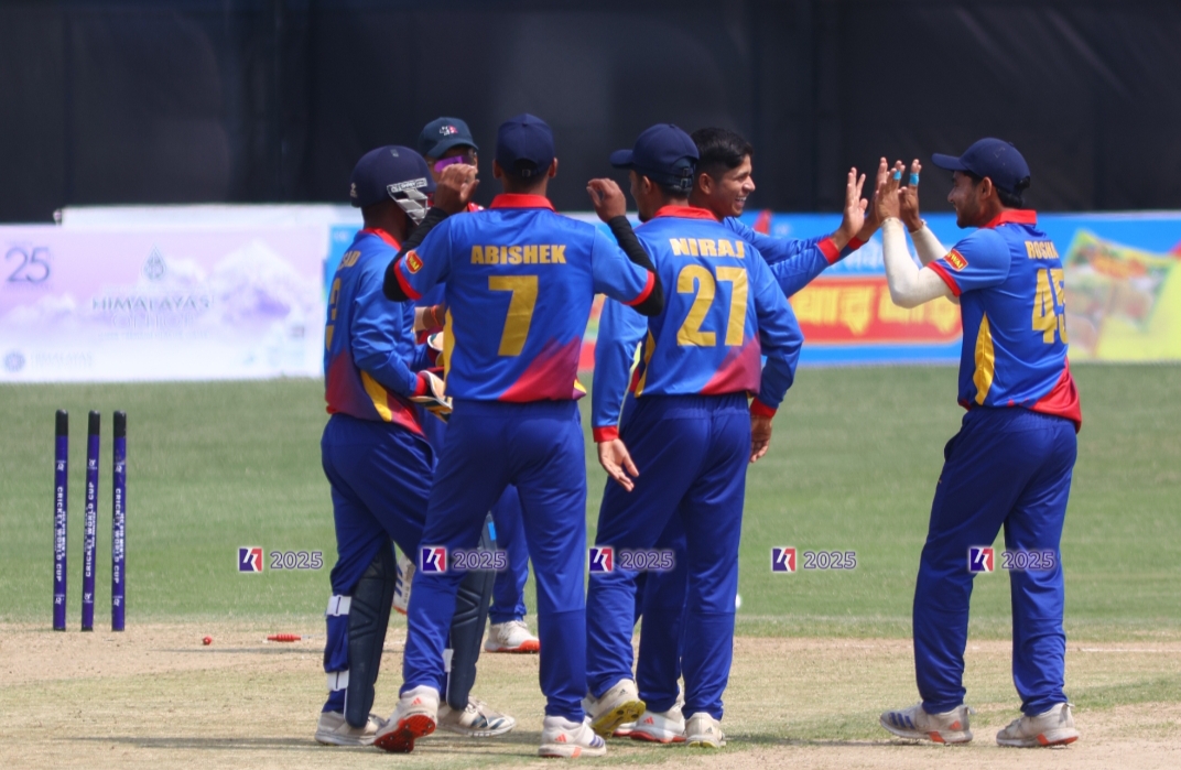 ओमान निरिह बनाउन युवराज खत्रीले सानदार बलिङ गरे। ७ ओभर बलिङ गर्दै २ मेडन सहित मात्र १५ रन खर्चेर ५ विकेट लिए। सन्तोष यादवले २ विकेट लिए।