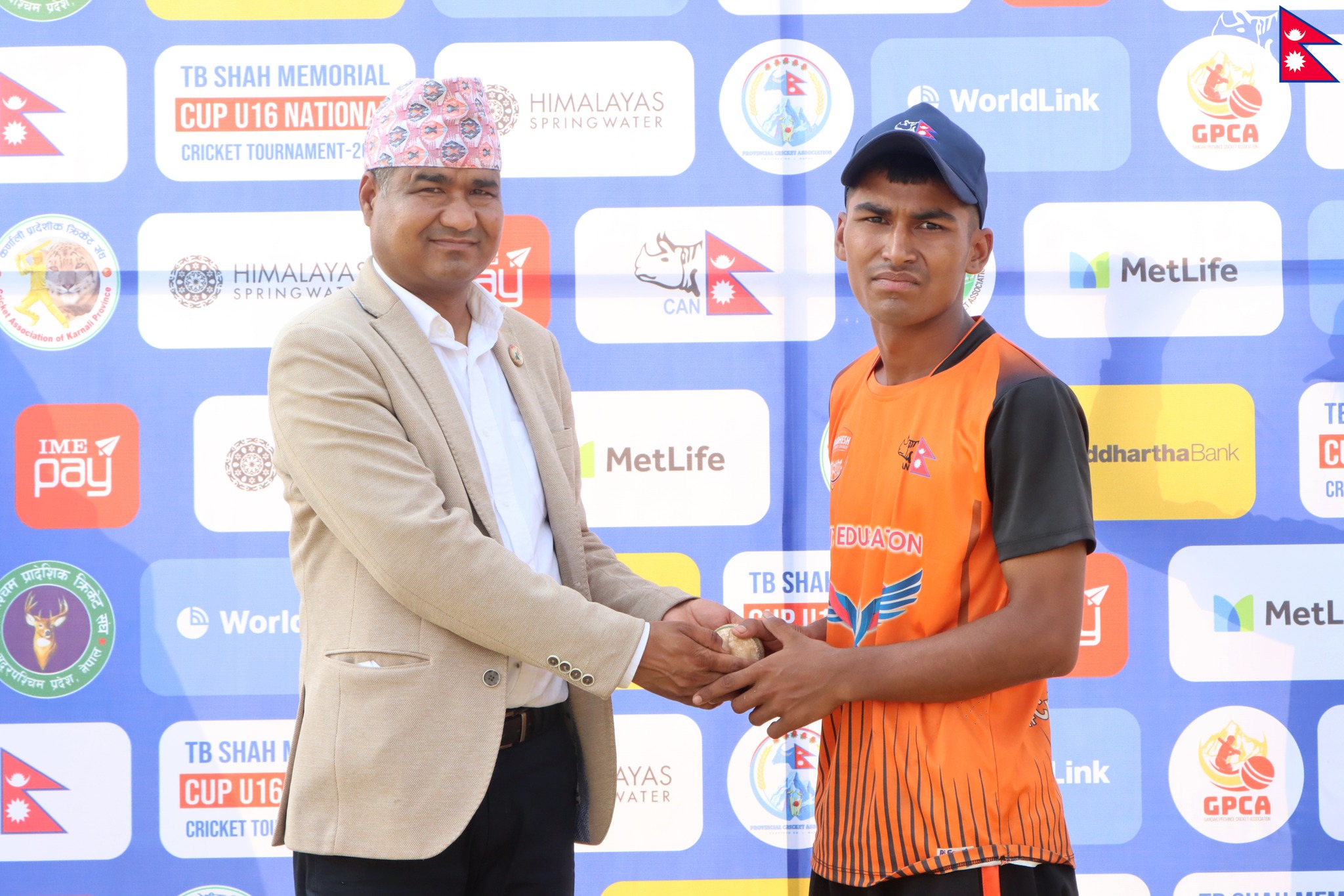 शिवशक्ति महतो ४६ बलमा ३ चौकाको सहयोगमा २२ रनमा आउट भए । कप्तान प्रसिद्ध जैशी र जोय थापाले समान १२ रनमा आउट भए ।