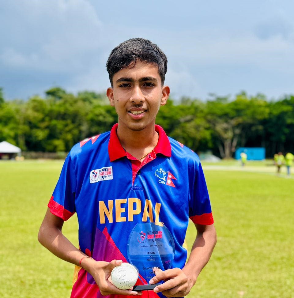 शुभमले १० ओभर गर्ने क्रममा ३ मेडन ओभर पनि फालेका थिए । जापानलाई पराजित गरेको नेपालले लगातार दोस्रो जित हासिल गरेको छ ।