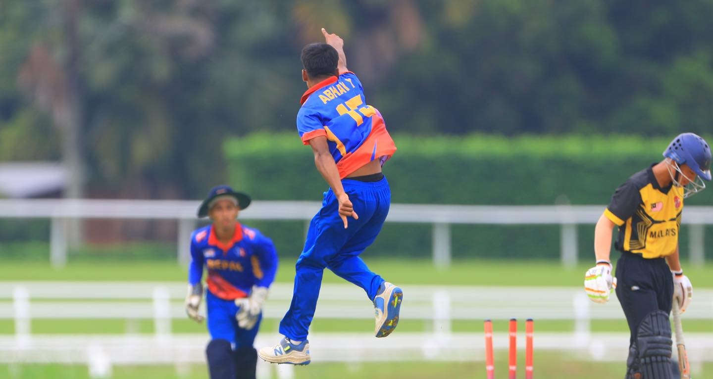 नेपालका अभय यादवले ४, शुभम खनालले ३ तथा कप्तान विपिनप्रसाद शर्मा र सचिन भट्टले समान १ विकेट लिए ।