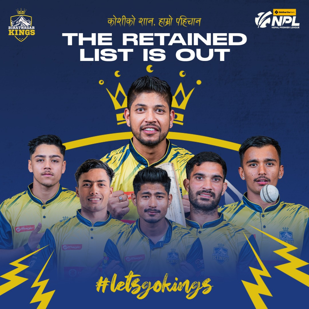विराटनगरले मार्की र कप्तान सन्दीप लामिछानेलाई यसअघि नै रिटेन गरिसकेको जानकारी गराएको थियो । विराटनगरले थप ५ रिटेन गरेको खेलाडीको नाम सामाजिक संजालमार्फत सार्वजनिक गरेको हो ।