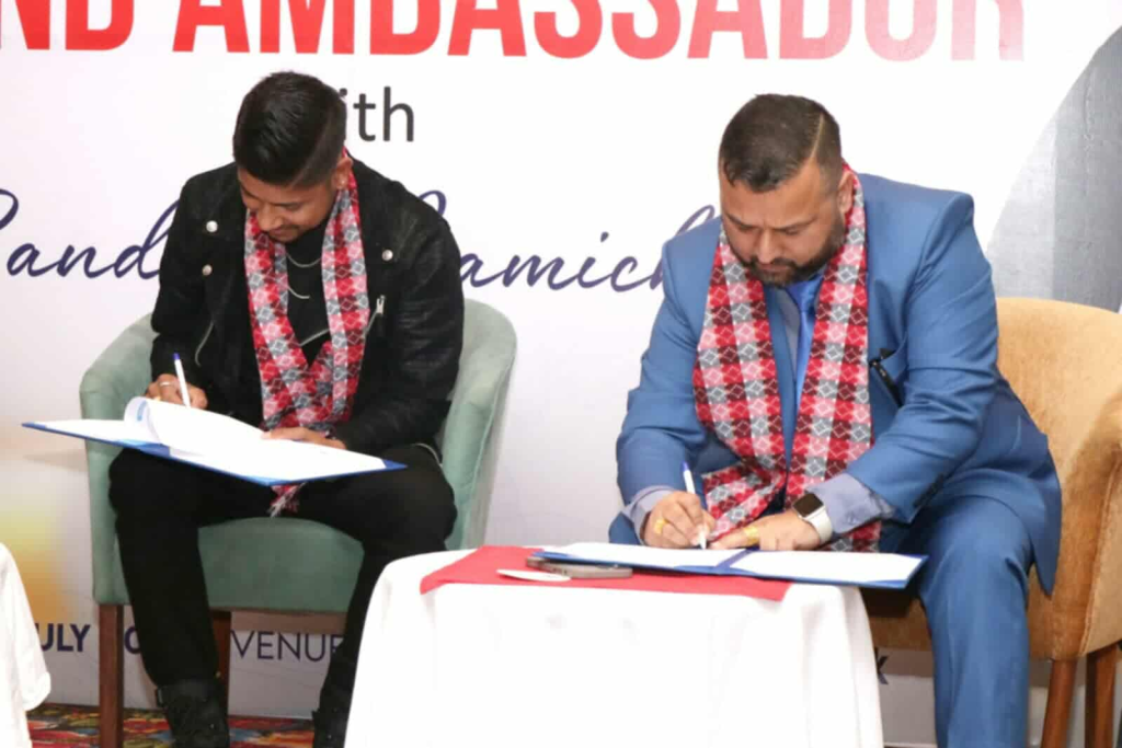 क्लोथिङ ब्राण्ड डेनिम एण्ड डेभिलका तर्फबाट सिइओ धनश्याम काफ्ले र सन्दीपले बिहीवार सम्झौता पत्रमा हस्ताक्षर गरे । सम्झौता अवधी ३ वर्षको रहेको सिइओ काफ्लेले जानकारी दिए । सम्झौताको आर्थिक पाटो भने दुवै पक्षले खुलाएको छैन ।