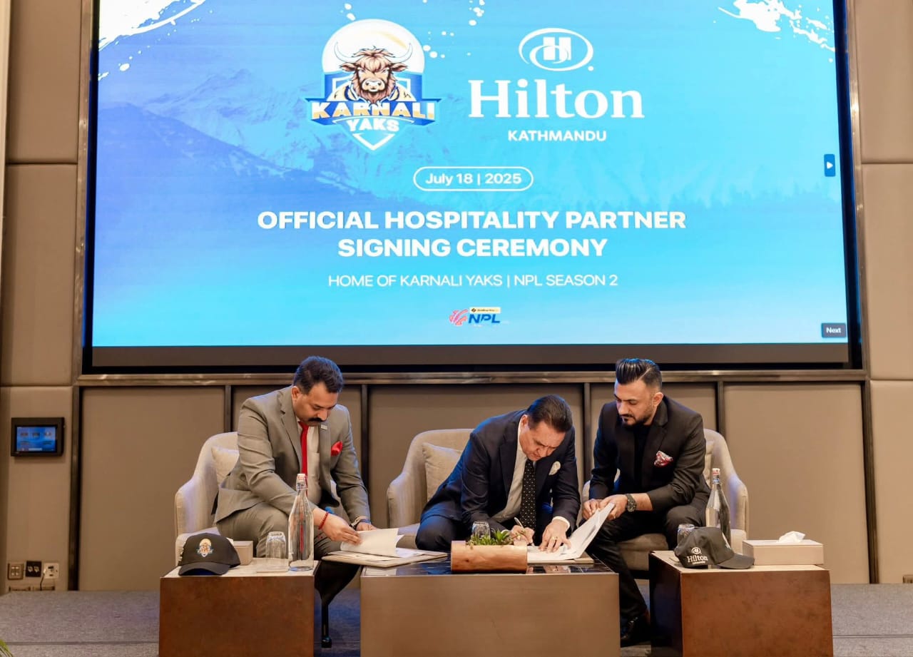 कर्णाली याक्स स्पोटर्स प्रा.लि र हिल्टन होटल काठमाडौंबीच शनिवार सम्झौता भएको छ । एनपिएलको दोस्रो संस्करणका लागि कर्णाली याक्सको हस्पिटालिटी पार्टनर हिल्टन काठमाडौं हुनेछ ।