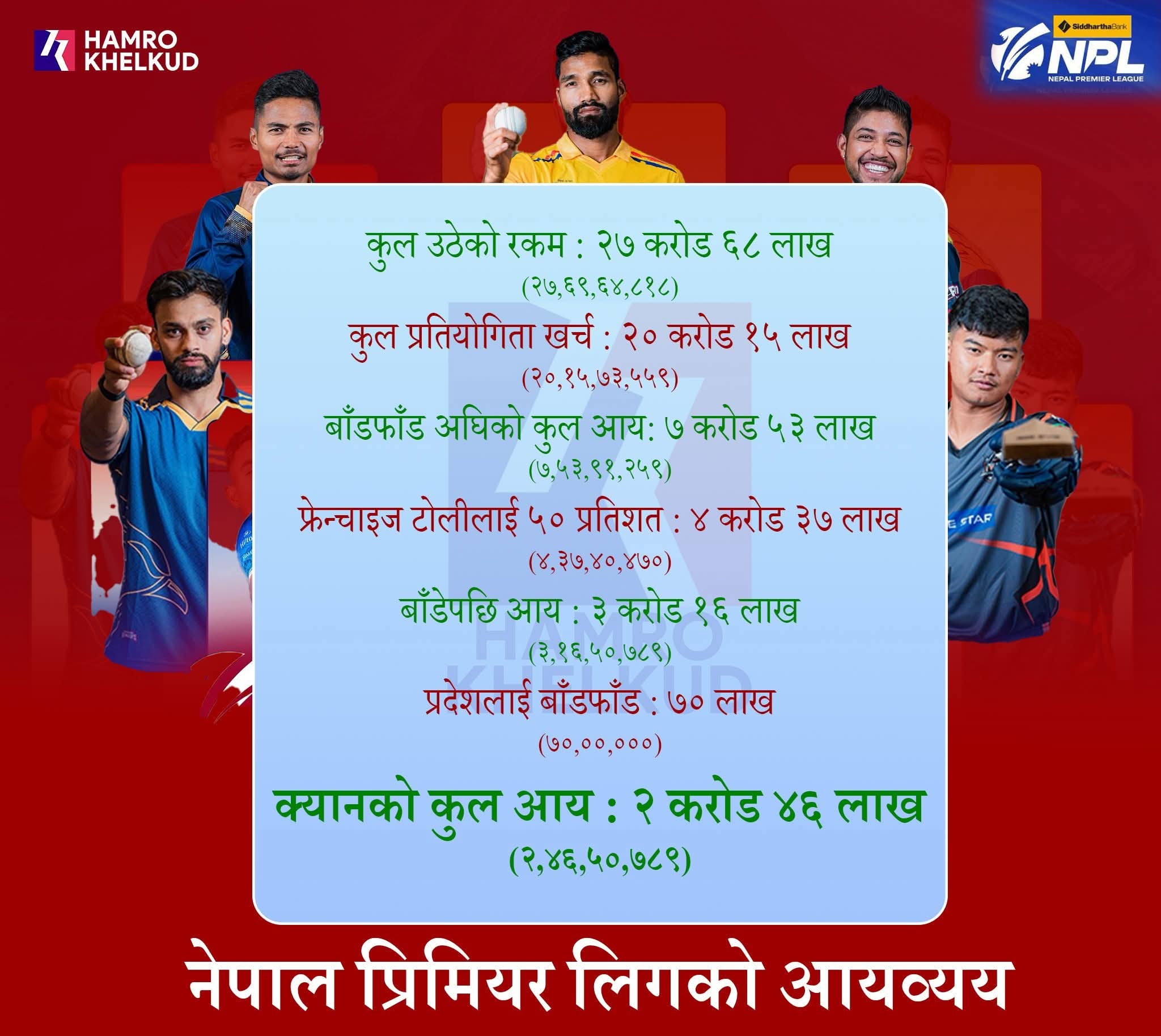 एनपिएलको खर्च आम्दानीको विषय चर्चामा थियो। क्यान भित्र पनि आयव्ययको बारेमा प्रश्न उठेको थियो। जसको छानबिन युवा तथा खेलकुद मन्त्रालयले पनि गरिरहेको छ। यसैबीच क्यानले आज हुसाब सार्वजनिक गरेको हो।