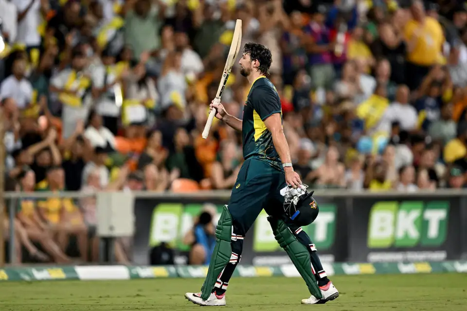ड्वारशुस १९ बलमा १७ रन बनाए । क्यामरुन ग्रिन १३ बलमा ४ चौका र ३ छक्कासहित ३५ जोडे । कप्तान मिचेल मार्श १३, नाथन एलिस १२ रनमा आउट भए ।