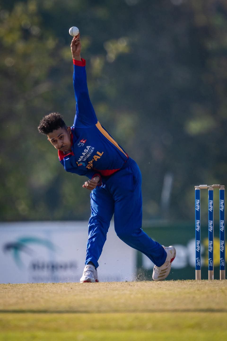 नन्दनले ३ ओभर बलिङ गर्दै १७ रन दिएर ५ विकेट लिए । त्यस्तै कप्तान रोहित पौडेल, कुशल भुर्तेल, रिजन ढकाल र सन्दीप लामिछानेले समान विकेट लिए ।