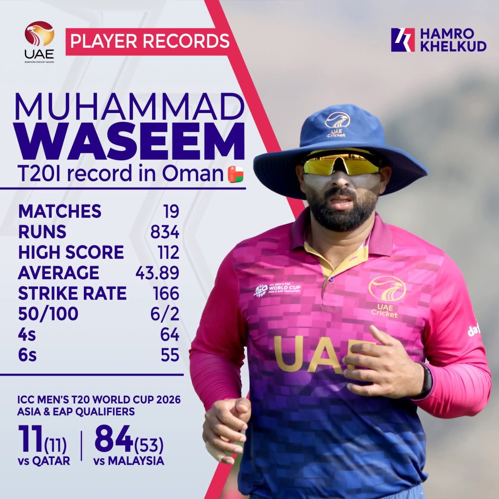 युएईका कप्तान मोहम्मद वासिम र ब्याटर अलिसन सराफुसँग नेपाली टोली सचेत रहनुपर्नेछ । यी दुई ठूलो इनिङका लागि परिचित छन्।