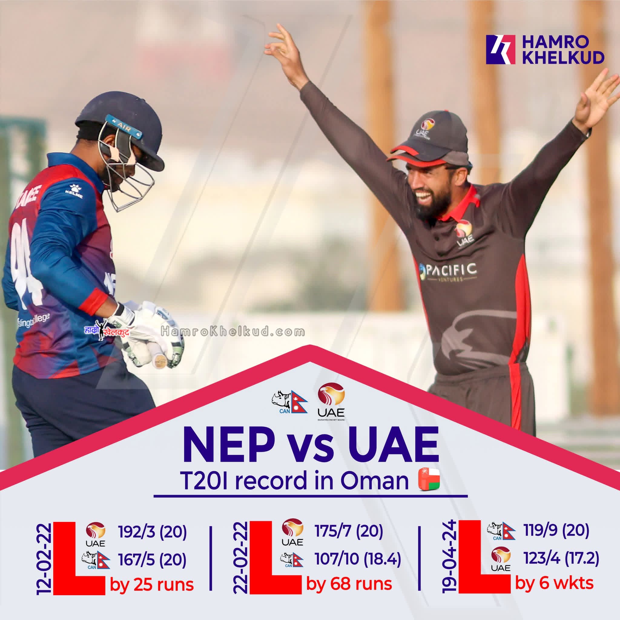 नेपाली टोलीले यसअघि ओमानी भूमीमा महत्वपूर्ण खेलमा त्यो पनि युएईसँग भोगेको हारको शृंखलालाई तोड्नुपर्ने चुनौती छ।