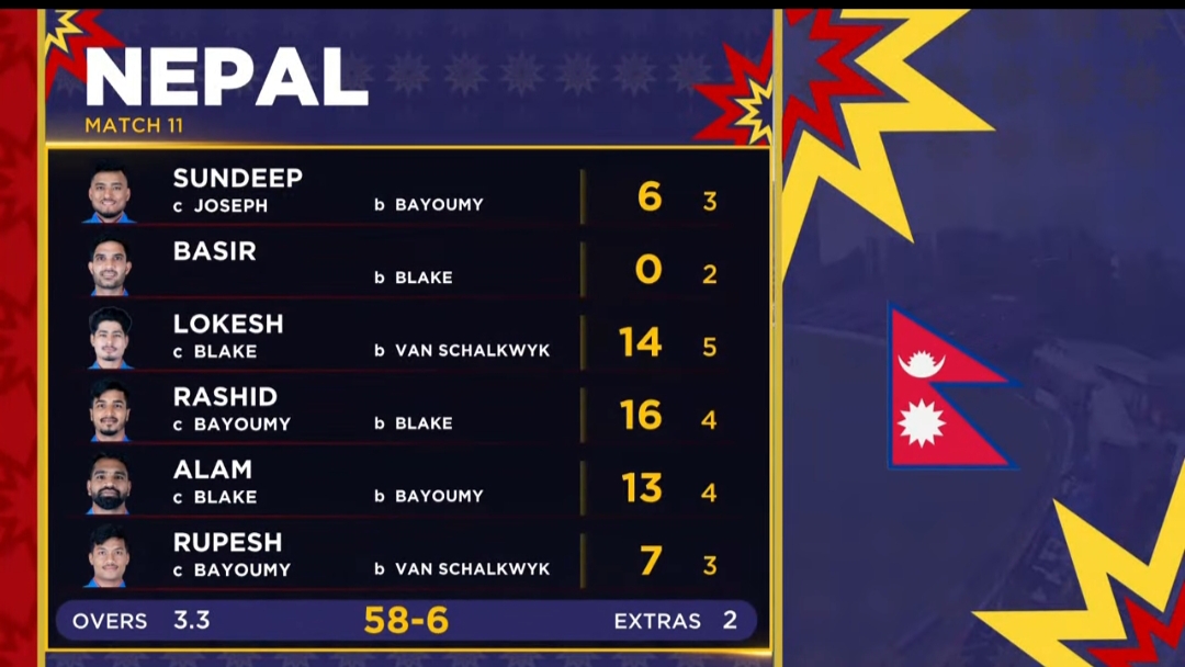 काठमाडौं (हाम्रो खेलकुद)- नेपाल सुपर लिग (एनपिएल) को दोस्रो सिजन अन्तर्गत लिग चरणको अन्तिम खेल आज कर्णाली याक्स र जनकपुर बोल्ट्सबीच हुँदैछ। टस जितेर जनकपुरले फिल्डिङ रोजेको छ। अब कर्णालीले पहिला ब्याटिङ गर्नेछ। साविक विजेता रहेको जनकपुर छैटौं खेलको समाप्तिमा २ अंकका साथ अंक तालिकाको पुछारमा छ। समान २ अंक जोडेको कर्णाली सातौं स्थानमा छ। […]