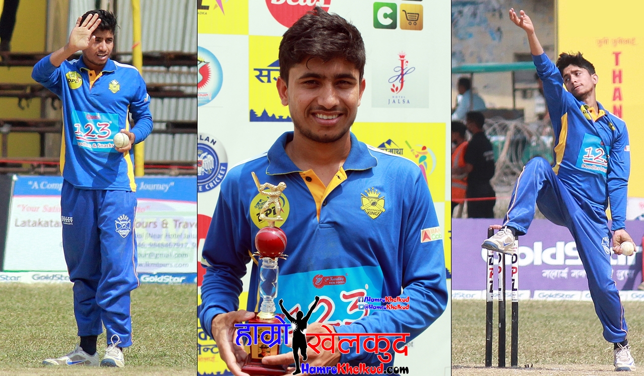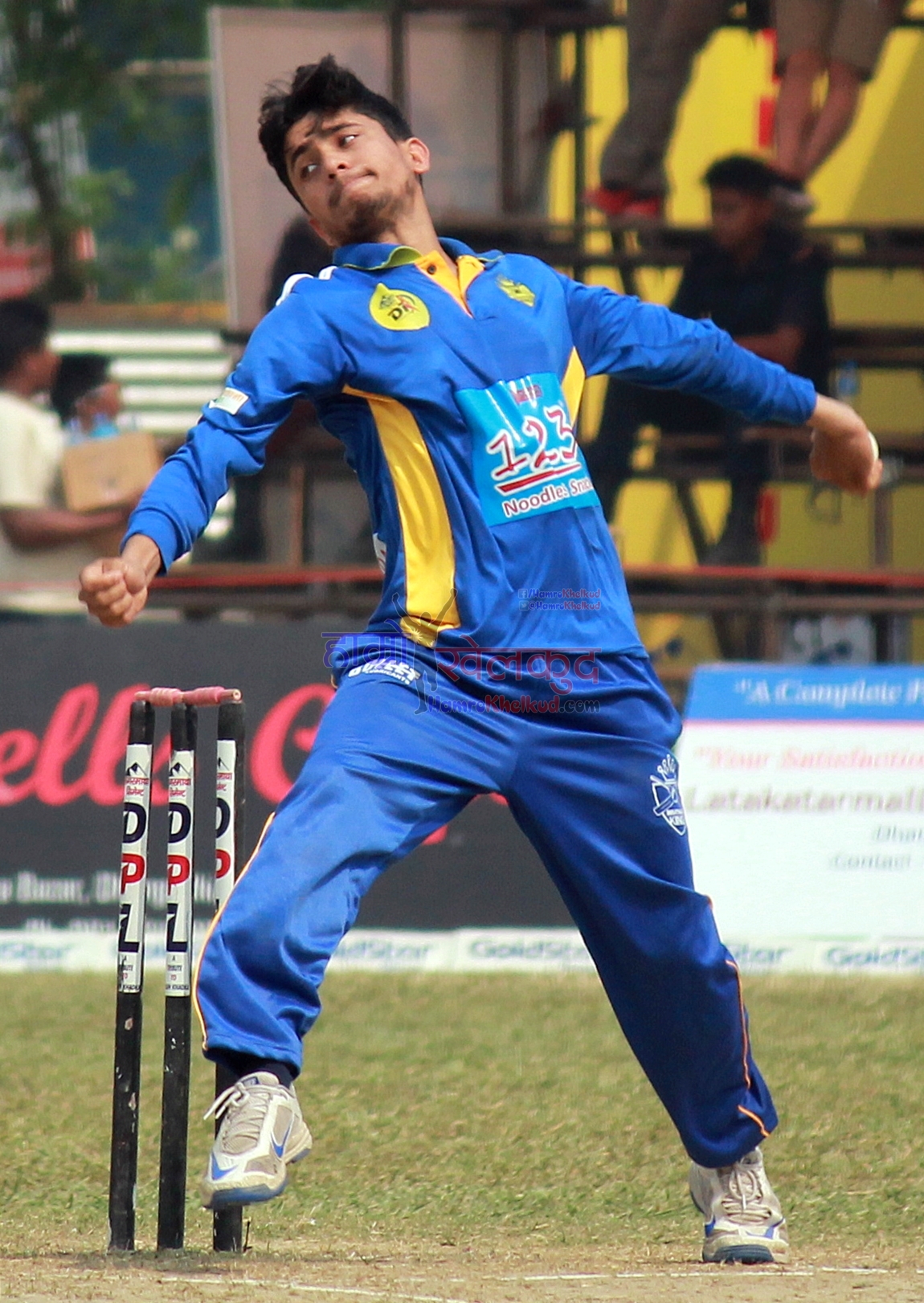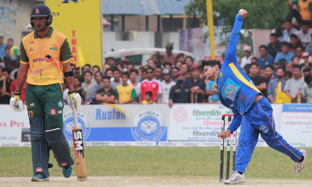 डिपिएलको फाइनल खेलमा चौराहा विरुद्ध बलिङ गर्दै