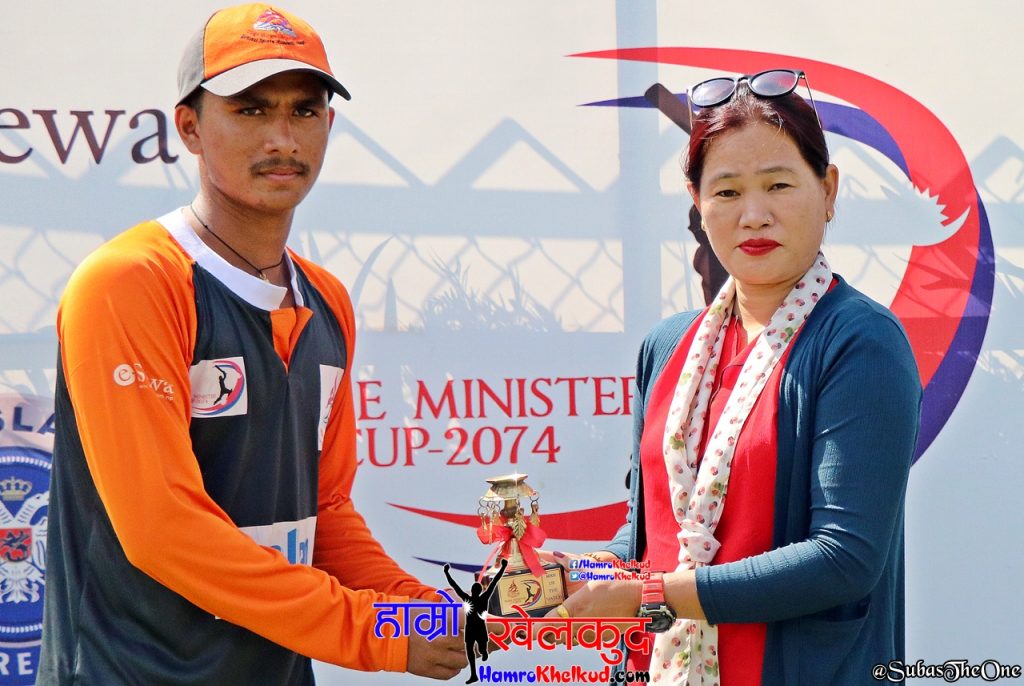 एपीएफका लागि भुवन कार्कीले उत्कृष्ट बलिङ गर्दै १० ओभरमा २ मेडन राख्दै २५ रन खर्चेर ३ विकेट लिए। अभिनाश बोहोराले २ विकेट लिंदा सन्दिप जोरा र कप्तान ज्ञानेन्द्र मल्लको नाममा समान १/१ विकेट रह्यो।