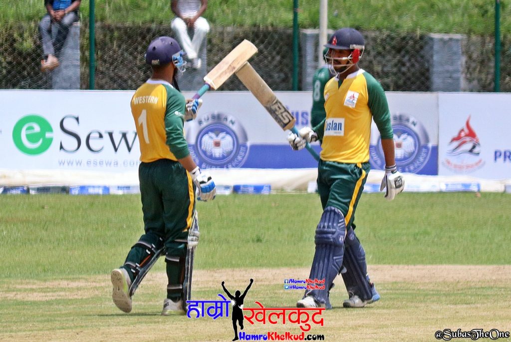 यस्तै सागर पुनले ६५ रनको अर्धशतकीय इनिङ्स खेले । ओपनर अनिल मण्डल ४८ रनमा आउट भए । राजु रिजाल २६ रन, विनोद भण्डारी १७ रन तथा सोमपाल कामी १० रनमा अविजित रहे । पश्चिमाञ्चलका धिरज शाहीले दुई विकेट लिए । विपिन खत्री, कृष्ण कार्की र रोहित कुमार पौडेलले समान एक–एक विकेट लिए ।