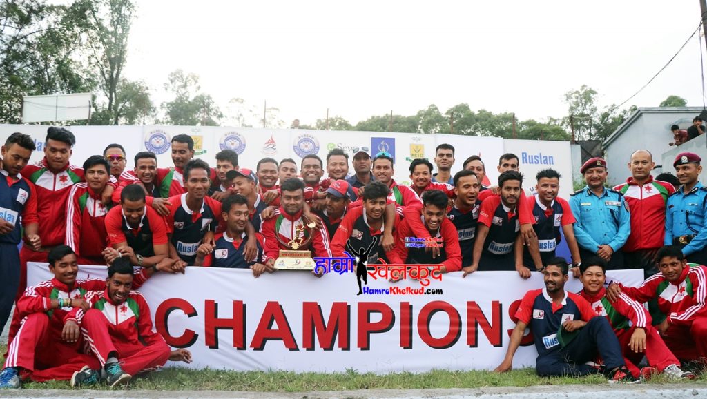 काठमाडौं (हाम्रो खेलकुद) – सर्वाधिक पुरस्कार राशिको प्रथम प्रधानमन्त्री कप एक दिवसीय पुरुष राष्ट्रिय क्रिकेट प्रतियोगितामा दुई विभागीय टोली त्रिभुवन आर्मी क्लब र नेपाल पुलिस क्लब संयुक्त रुपमा विजेता बनेको छ । प्रतियोगिता अन्तर्गत बिहिबार वर्षाले प्रभावित बनेको फाइनल खेल पुन सुचारु हुन नसक्दा दुवै टोली संयुक्त रुपमा विजेता बनेको हो ।