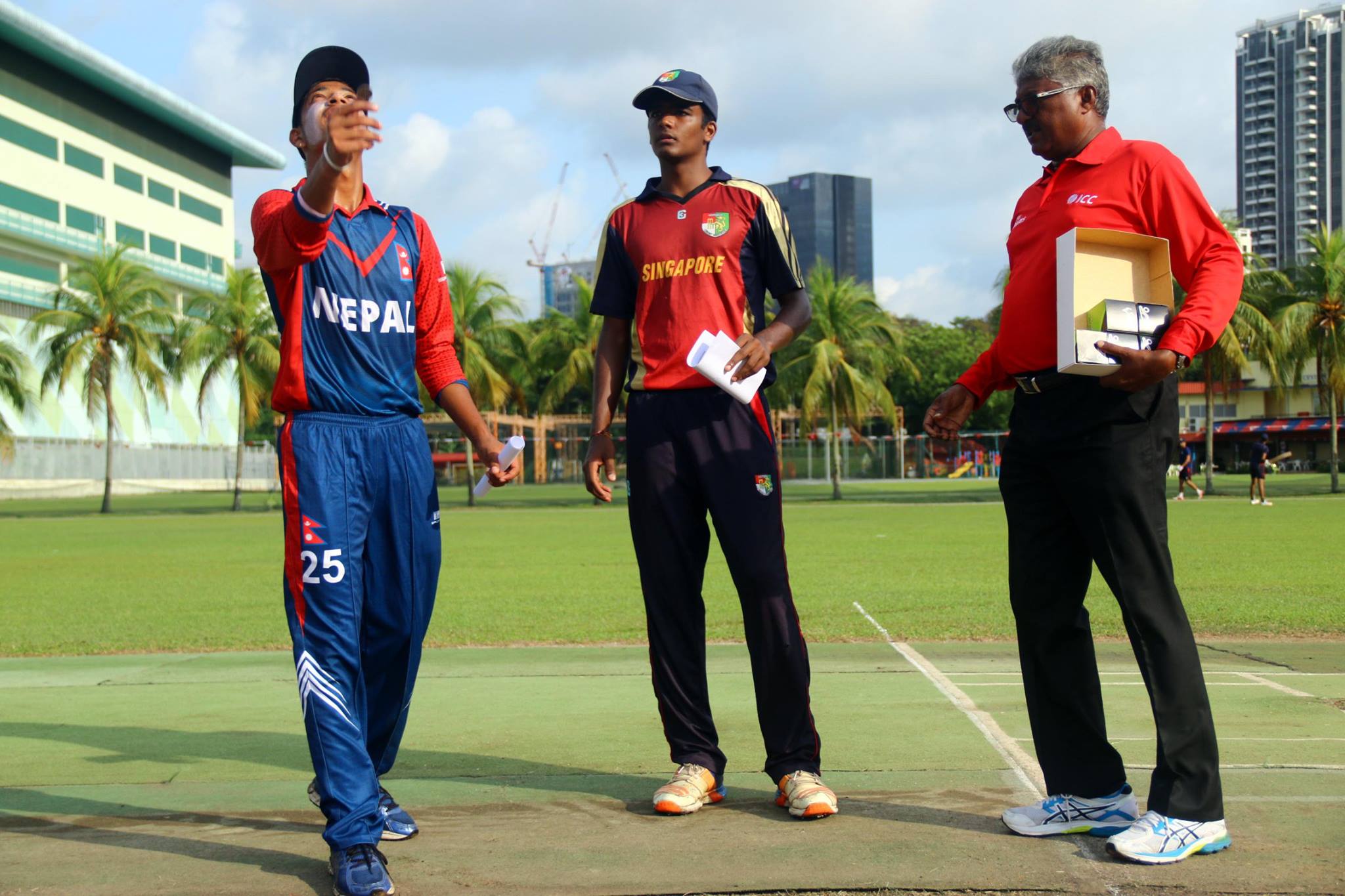 काठमाडौँ (हाम्रो खेलकुद) – आइसीसी यू१९ विश्वकप छनोट (एसिया क्षेत्र) अन्तर्गत दोश्रो राउण्डको पहिलो खेलमा नेपालले आयोजक सिंगापुरविरुद्ध खेल्दैछ। खेलमा नेपालले टस जितेर पहिलो ब्याटिङ गर्ने निर्णय लिएको छ।
