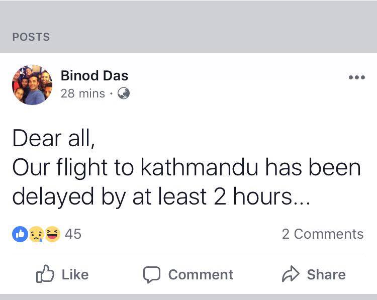 काठमाडौं (हाम्रो खेलकुद) – एसिसी यू १९ पूर्वी क्षेत्र क्रिकेट च्याम्पियन नेपाली युवा टोली स्वदेश फर्कनमा ढिलाई हुने भएको छ । युवा टोली हिमालयन एयरलाइन्सको विमानबाट साँझ ६ः५५ बजे त्रिुभवन अन्तर्राष्ट्रिय विमानस्थलमा ओर्लने तय भएपनि कम्तीमा २ घन्टा ढिला हुने टोलीका प्रशिक्षक विनोद दासले फेसबुकमा स्ट्याटस राखेका छन् ।