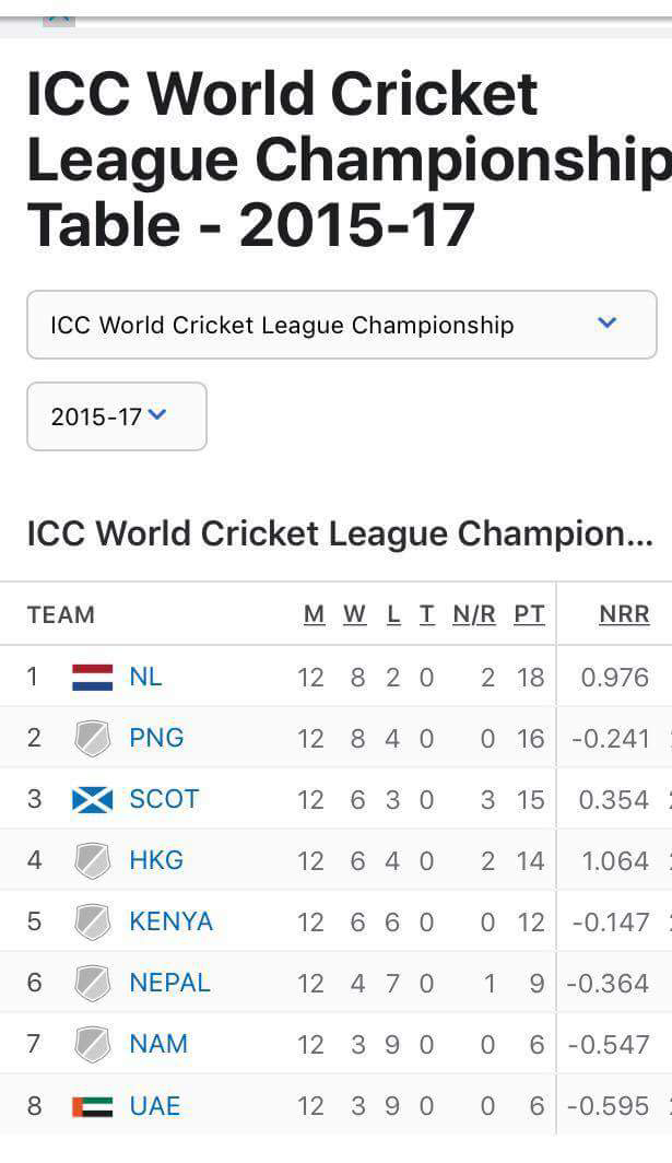विश्व क्रिकेट लिग च्याम्पियनसिपको अंक तालिका