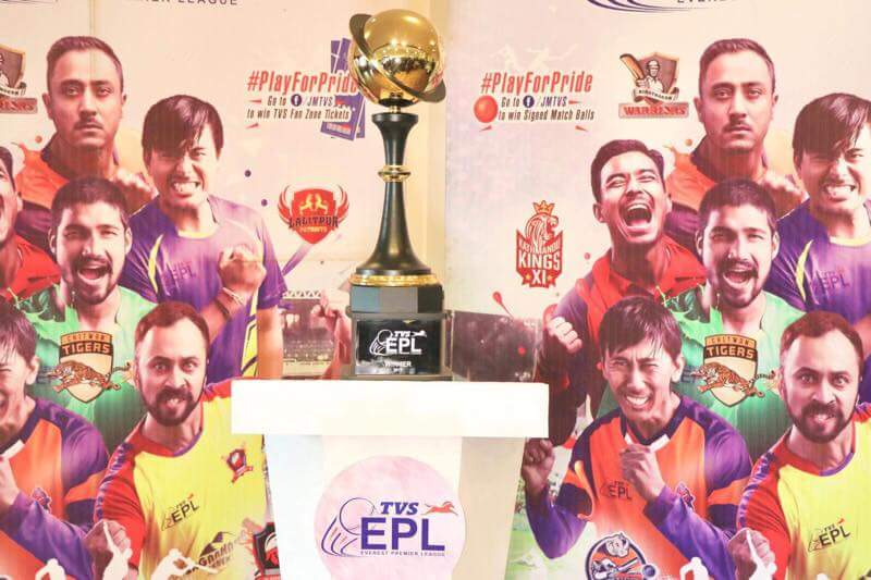 काठमाडौं (हाम्रो खेलकुद) – टीभीएस एभरेष्ट प्रिमियर लिग (इपिएल) टि ट्वान्टी क्रिकेट प्रतियोगिताको दोस्रो संस्करण सोमबारबाट राजधानीमा सुरु हुदैछ । आयोजक इपिएलले आइतबार पत्रकार सम्मेलन गर्दै इपिएलको ट्रफी सार्वजनिक गरेको छ । ट्रफी इपिएलका प्रबन्ध निर्देशक आमिर अख्तर, सहभागी ६ टोलीका र मालिकले संयुक्त रुपमा सार्वजनिक गरेका थिए ।