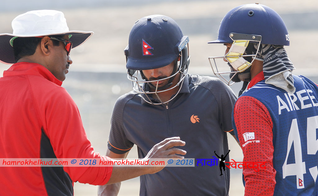 काठमाडौं (हाम्रो खेलकुद) – विश्व क्रिकेट लिग अन्तर्गत डिभिजन टूको तयारीमा रहेको नेपाली टोलीको प्रशिक्षण जारी छ । फेब्रुअरी ८ बाट नामेबियामा हुने प्रतियोगिताका लागि नेपाली टोलीले मंगलबार पनि सामान्य रुपमा प्रशिक्षण गर्यो । हेरौं मंगलबारका प्रशिक्षणका केही तस्बिरहरु ।