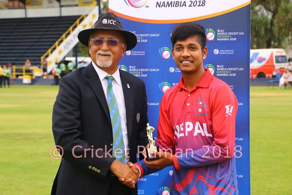 काठमाडौं (हाम्रो खेलकुद) – आइसिसी विश्व क्रिकेट लिग डिभिजन–२ प्रतियोगिता अन्तर्गत आजको पहिलो खेलमा नेपालले नामिबियालाई १ विकेटले पराजित गरेको छ । १ सय ३९ रनको सानो लक्ष्य पछ्याएको नेपालको ८ विकेटको क्षतिमा १ सय ४ रन थियो । तर पुछारका ब्याट्सम्यानले राम्रो प्रदर्शन गरेपछी नेपाल हारबाट जोगियो । नेपालका लागि बसन्त रेग्मीले १० औ नम्बरमा ब्याटिङ् गर्ने क्रममा २४ बलमा २४ रन प्रहार गर्दै नेपाललाई जिततर्फ डोर्याएका थिए।