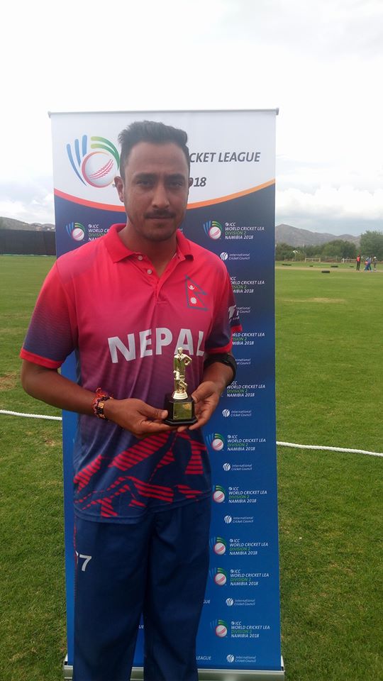 नेपालका लागि सोमपाल कामी र सन्दिप लामिछानेले उत्कृष्ट बलिङ प्रदर्शन गरे । सन्दिपले ७ ओभरमा ३० रन दिँदै ३ विकेट लिए । सन्दिपले आफ्नो पहिलो ओभरमै दुई बलमा दुई विकेट लिँदै खेल नेपालको पक्षमा ढल्काएका थिए । त्यस्तै सोमपाल कामीले ४ विकेट लिए । पारसले बलिङतर्फ पनि २ विकेट लिए भने करन केसीले एक विकेट लिएका थिए ।