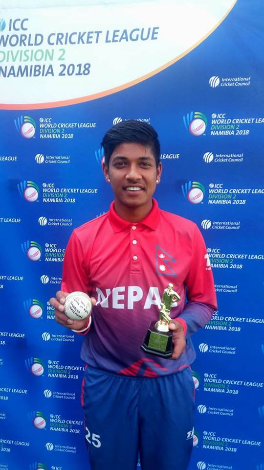 केन्याले आज खेलमा राम्रो सुरुवात गरेको थियो । केन्या एक समयमा बिना क्षति १६ ओभरमा ६५ रन थियो । त्यस बेला बलिङ गर्न आएका सन्दिपले ओपनर एलेक्स ओबान्डालाई आउट गर्दै नेपाललाई खेलमा फर्काएका थिए । नेपालका लागि सोमपाल कामी, वसन्त रेग्मी र कप्तान पारस खड्काले एकएक विकेट लिन सफल भए ।