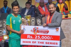 काठमाडौं (हाम्रो खेलकुद) – त्रिभुवन विश्वविद्यालय ‘टियु’ को ‘ए’ टिमले युनिभर्सिटी क्रिकेट कप टी–ट्वान्टी क्रिकेट प्रतियोगिताको उपाधि जितेको छ । त्रिवि क्रिकेट मैदानमा शनिबार भएको फाइनलमा टियुले डिएभी कलेजलाई ६ विकेटले पराजत गर्दै दोस्रो संस्करणको उपाधि आफ्नो पक्षमा पारेको हो ।