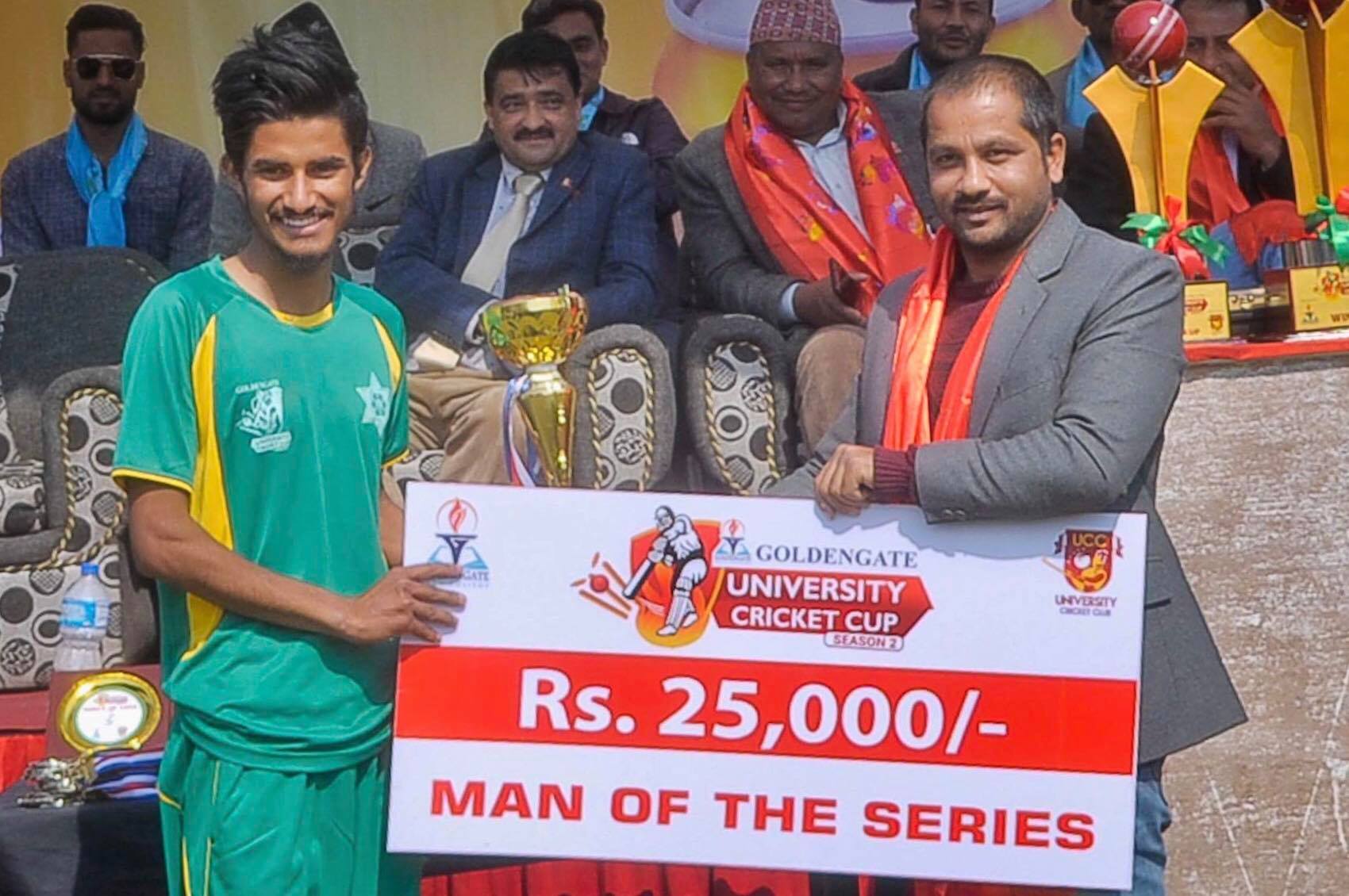 उपाधिसँगै टियुले २ लाख रुपैया हात पार्यो । दोस्रो भएको डिएभीले १ लाख रुपैयामा चित्त बुझायो । टियुका इशान पाण्डे प्रतियोगिताको सर्वाेत्कृष्ट खेलाडी घोषित भए । उनले २५ हजार रुपैया प्राप्त गरे । डिएभीका आदिल खान उत्कृष्ट ब्याट्सम्यान, टियुका सागर ढकाल उत्कृष्ट बलर र महेश खत्री प्रतियोगिताको उदयमान खेलाडी घोषित भए । उनीहरुले समान १० हजार रुपैया हात पारे ।