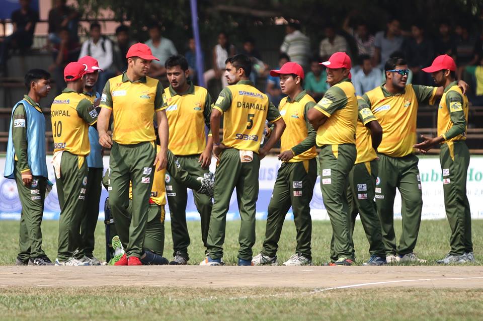 अनिल शाहलाई व्यक्तिगत २४ रनमा गुमाएको विराटनगरले अर्को १४ रन बनाउदा हायात, पृथु बास्कोटा र कप्तान पारस खड्कालाई गुमाएको थियो । हायातले १५, पृथुले ३ तथा परासले २ रन प्रहार गरे । चौराहाका लागि पहिलो ५ मध्ये ४ विकेट सुनिल धमलाले लिएका थिए । त्यस पछि ब्याटिङ् गर्न आएका पवन सराफले टिमका लागि सर्वाधिक ४१ रन प्रहार गरेका थिए ।