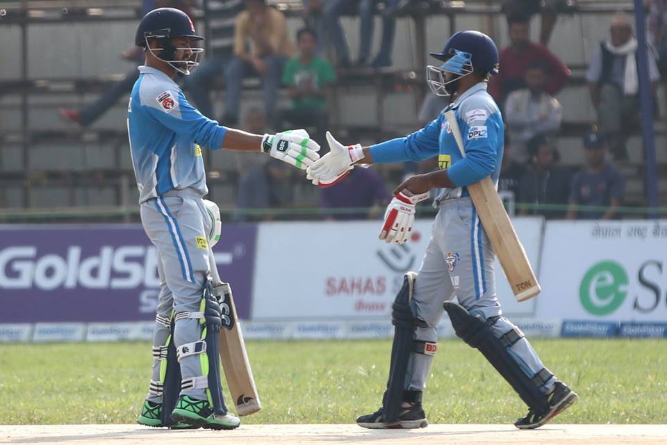 प्रदिपले ३२ बलमा ३९ तथा कुशलले २२ बलमा १५ रन प्रहार गरेका थिए । अगिल्लो खेलहरुमा ठुलो स्कोर बनाउन नसकेका सागर पुन पुन: १६ बलमा २८ रन बनाउदै आउट भए । उनले २ छक्का र १ चौका प्रहार गरेका थिए। अन्य ब्याट्सम्यानहरु दिपक प्रशादले १७, सुफ्याँन महमुद, सुसन भारी र अमर सिंह राउटेलाले ९-९ रन प्रहार गरे भने शक्ति गौचन ३ रन प्रहार गर्दै नट आउट रहे ।