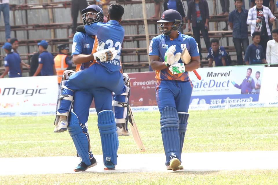 त्यस अघि टस जितेर ब्याटिङ् रोजेको विराटनगरले निर्धारित २० ओभर पुरा खेल्दै ८ विकेट गुमाएर १ सय ६४ रन प्रहार गरेको थियो । चौथो ओभरमा सुबोध भाटिको बलमा नरेश बुढायरले क्याच फुत्काएपछि जीवनदान पाएका अनिल कुमार शाहले दिलिप नाथसँग मिलेर पहिलो विकेटको लागि ३८ रनको साझेदारी गरेका थिए । दिलिपले २७ बलमा ३३ र अनिलले २२ बलमा १० रन प्रहार गरेका थिए ।