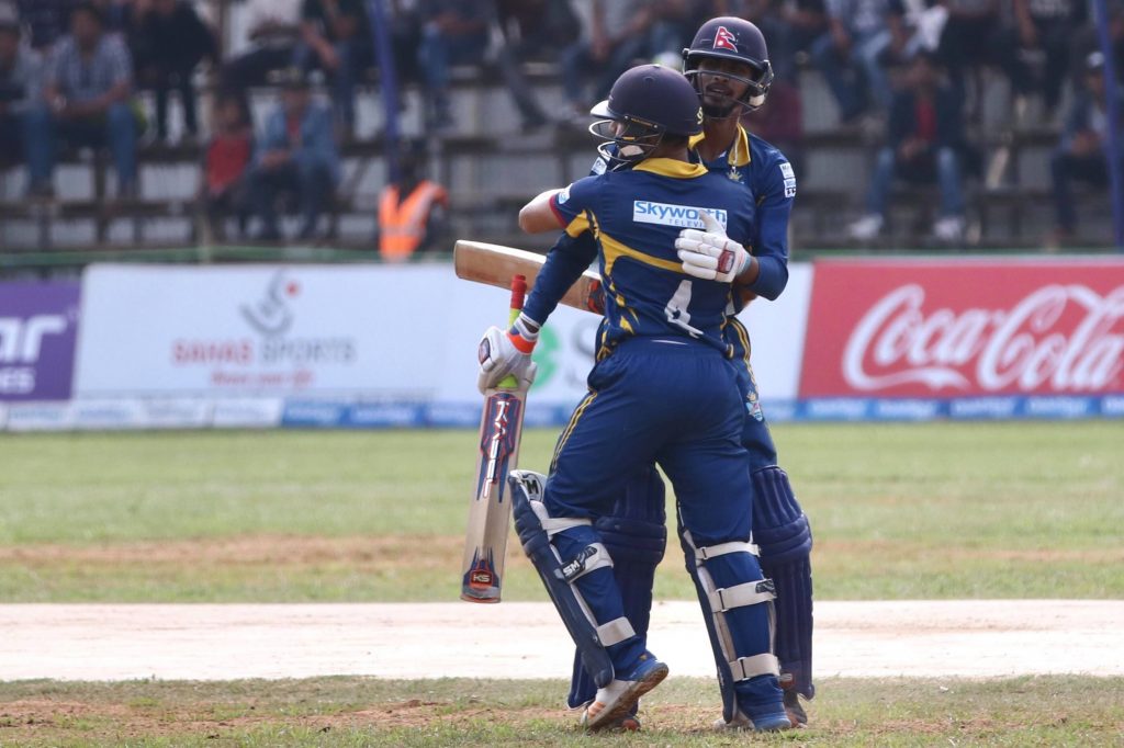 एसएसपी क्रिकेट मैदानमा आइतबार भएको खेलमा विराटनगका लागि ओपनर ब्याट्सम्यान अनिल कुमार शाह १५ रनमा आउट भए । अनिल कमल सिंह ऐरीको बलमा कुशल भुर्तेलबाट क्याच आउट भए । अर्का ओपनर ब्याट्सम्यान बाबार हायात १४ रनमा आउट भए । बाबार दोस्रो ओभरमा शुभांकर उराओको बलमा कुशल भुर्तेलबाट क्याच आउट भए । कप्तान पारस खड्का ९ रनमा आउट भए ।