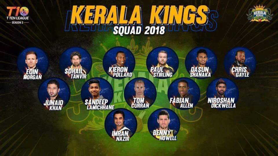टी–१० लिगमा कुल ६ टिम सहभागी रहेका छन् जसमा मराठा अरबियन्स, पख्तुन्स, पन्जाबी लेजेन्ड्स, कराचियन्स, बङ्गाल टाइगर्स, केरला किंग्स, राजपुत्स, नर्थर्न वारियर्स रहेका छन्। केरला किंग्सको आइकन मोर्गन, मराठाको राशिद खान, पख्तुन्सको शहिद अफ्रिदी,पन्जाबीको शोयब मलिक, कराचियन्सको शेन वाटसन, बेङ्गालको सुनिल नारायण, नर्थर्न वारियर्सको ड्यारेन स्यामी तथा राजपुत्सको ब्रेन्डन म्याकलम रहेका छन्।