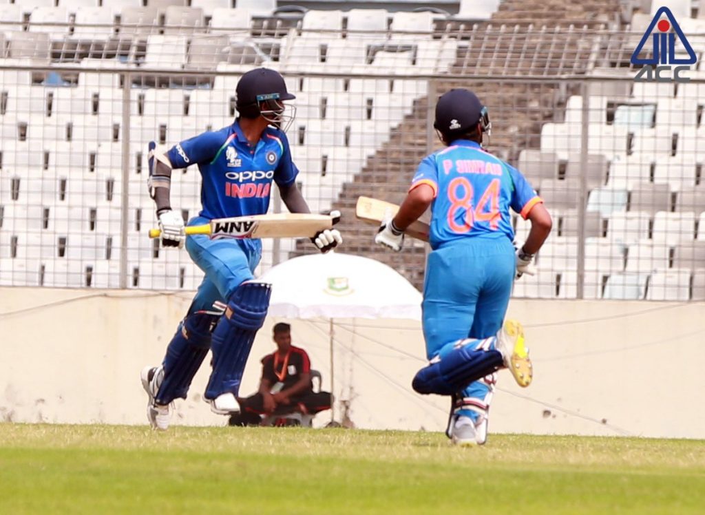 टस जितेर पहिला ब्याटिङ गरेको भारतले ४९ ओभर ३ बलमा अल आउट हुँदै मात्र १ सय ७२ रन बनाउन सकेको थियो । उस्का लागि अनुज राउत ३५, यशस्भी जैसवाल ३७,आयुष बडोनी २८ र समिर चौधरीले ३६ रन बनाउन बाहेक अन्य कुुनै पनि ब्याटम्यानले राम्रो प्रर्दशन गर्न सकेनन् । बंगलादेशका एमडी शोरिफुल इस्लाम ३,मोहम्मद मित्तुनजय,मोहमम्द रसिद र कप्तान एमडी ताहिद हिराइडले समान दुई विकेट लिएपनि टिमलाई जिताउन सकेनन् । अब भारतले उपाधिको लागि शुक्रबार हुने अफगानिस्तान र श्रीलंकाबीचको विजेतासँग अक्टोबर ७ मा खेल्ने छ ।