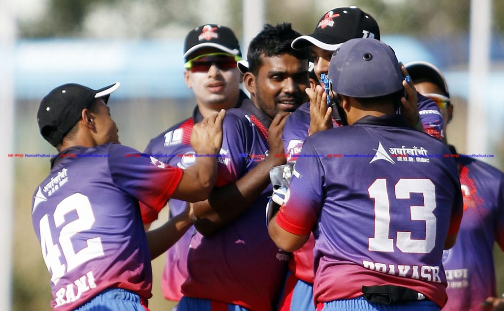 ओपनर जयकिसन कोल्सावालाले ४५ रनको योगदान दिए । ३५ बलमा कोल्सावालाले ३ चौका २ छक्का प्रहार गरे । अघिल्ला खेलमा उच्च प्रदर्शन गरेका गौरव तमोर ११ रनमा आउट भए । ओपनर अमित श्रेष्ठ ४ रनमा आउट भए । विपीन खत्रीले २ विकेट लिए । रोहन मुस्ताफा र मोहम्मद संसाद शेखले १ विकेट लिए ।