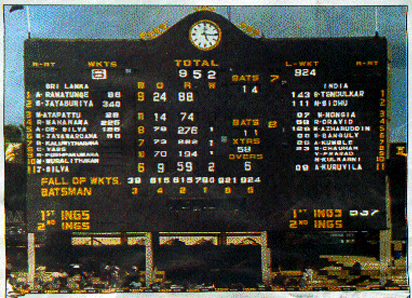 टेस्ट क्रिकेटको इतिहासमा पहिलो इनिङ्समा सर्वाधिक रन स्कोर बनाउने रेकर्ड श्रींलका क्रिकेट टिमलाई जान्छ । सन् १९९७ मा भारतबीरुद्ध श्रीलंकाले बनाएको ९५२ – ६ नै एकै इनिङ्समा बनाएको सर्वाधिक रन हो । यो रेकर्ड बन्नु अघि इङ्ल्यान्डले अस्टेलियाबीरुद्ध सन् १९३८ मा ९०३– ७ मा उच्च स्कोर बनाएको थियो । सन् १९९७ देखी कुनै पनि टोलीले ८ सय रन कटाउन सकेका छैनन् । टेस्ट क्रिकेटमा इङ्ल्यान्डले २ तथा श्रींलकाले १ पटक मात्र ८ सय रन कटाएका छन् । भने कुनै पनि टेस्ट टिमले ८ सय रन छुन सकेका छैनन् । श्रींलकाले बनाएको ९ सय ५२ रनको उच्च स्कोर टेस्ट क्रिकेटमा अव तोडिन असंभव जस्तै देखिएको छ ।