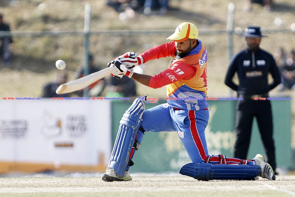 टस हारेर पहिला ब्याटिङ गरेको भैरहवाले १९.३ ओभरमा अल आउट हुदैँ १ सय ४३ रन बनाउन सक्यो । ओपनर कुशल मल्ल र प्रदीप ऐरीले पहिलो विकेटका लागि ३५ रनको साझेदारी गर्दै मध्यम सरुवात गरेका थिए । पल स्टरलिङको पाँचौ ओभरको चौथो बलमा प्रदीप एरीलाई २६ रनमा पृथु वास्कोटाले रन आउट गराउदा अर्को बलमा मल्ललाई बोल्ड गर्दै ३ रनमा आउट गर्दै दुबै ओपनरलाई पेभिलिएन फर्काए ।