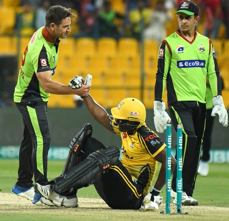 पेशावरका लागि टिम मिल्सले ३,समिन गुल २,वहाव रियाज र लियाम डोसनले समान एक एक विकेट लिए । यो हारसँगै लाहोरको अघिल्लो चरणको संभावना लगभग सकिएको छ ।