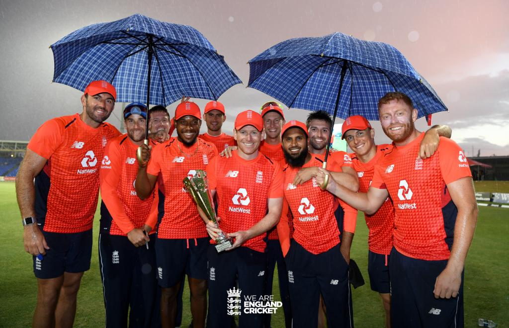 सामान्य ७२ रनको लक्ष्य इंग्ल्यान्डले १०.३ ओभरमा २ विकेटको क्षतिमा पुरा गर्यो । इंग्ल्यान्डका लागि ओपनर जोनी बेस्ट्रोले ३१ बलमा ४ चौका र २ छक्का प्रहार गर्दै ३७,एलेक्स हेल्स २० रनमा आउट हुँदा कप्तान ईयोन मोर्गन १० र जो रुट ४ रनमा अविजित रहे । वेस्ट इन्डिजका कप्तान जोसन होल्डर र देवेन्द्र विशुले एक एक विकेट लिए ।