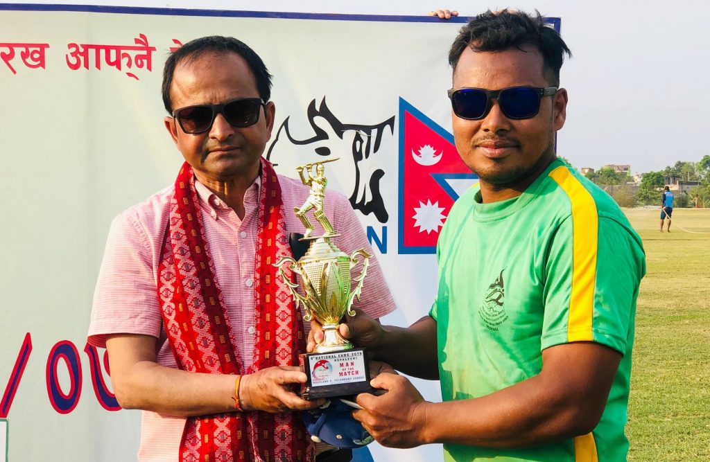 नेपालगञ्जमा जारी ८ औं राष्ट्रिय खेलकुदको क्रिकेट अन्तरगत आईतबार भएको दोस्रो खेलमा प्रदेश नम्बर १ ले प्रदेश नम्बर ६ लाई ५० रनले पराजित गरेको छ । प्रदेश ६ ले कोहलपुर क्रिकेट मैदानमा टस जितेर फिल्डिङको निर्णय लिएको थियो । ब्याटिङको निम्तो पाएको प्रदेश १ ले निर्धारित २० ओभरमा ८ विकेट गुमाउँदै १ सय २३ रन बनाएको थियो । प्रदेश १ का लागि मुकुन्द यादवले ३२,राजन मगरले २३ र पुष्प थापा १७ रनमा आउट भए । प्रदेश ६ का युनिस बिक्रम सिंहले ३,दिनेश अघिकारी र प्रकास टाँसीले समान दुई विकेट लिए ।