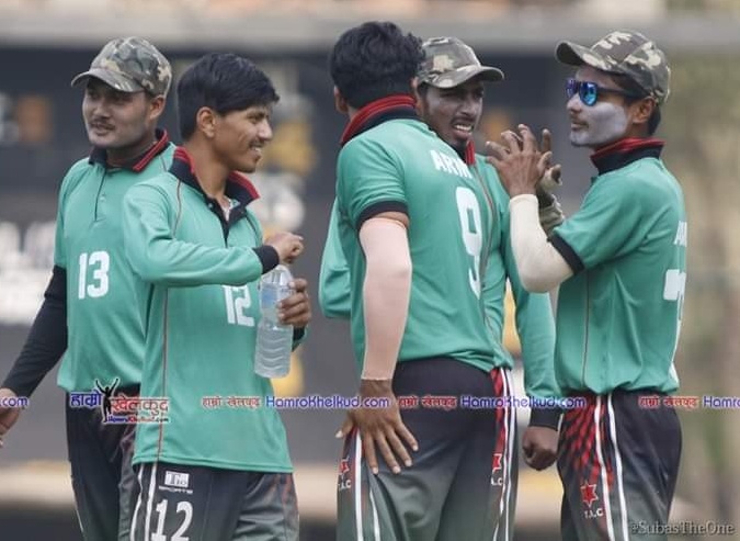 सुसन भारीले ५.५ ओभरमा २ मेडन सहित ५ रन खर्चेर ३ विकेट हात पारे । करन केसीले २,जितेन्द्र मुखिया,हरि बहादुर चौहान र साहव आलमले समान १ विकेट हात पारे ।