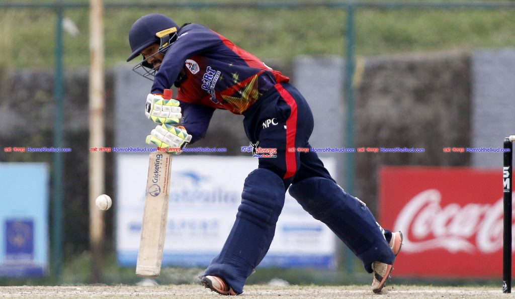 पहिलो ओभरको चौथो बलमा कप्तान विनोद भण्डारीलाई आरिफले बोल्ड आउट गर्दै शुन्यमा पेभिलिएन फर्काए । ८ औं ओभरको चौथो बलमा दिपेन्द्र सिंह ऐरीले राजु रिजाललाई १६ रनमा एलवी डब्लू आउट गरे । नवौं ओभरको तेस्रो बलमा आरिफले भिम सार्कीलाई १ रनमा क्याच आउट गराएपछि आर्मी दवावमा परेको थियो । राजेश पुलामी मगर ६,रोहित कुमार पौडेल १६,कुशल मल्ल र करण केसी समान १ रनमा आउट भएपछि आर्मी जित टाढिएको थियो । जितेन्द्र मुखिया ७ बलमा समान १ चौका र छक्का सहित १२ रनमा रन आउट भए । साहव आलम ९ र सुसन भारीले १० रन बटुले ।