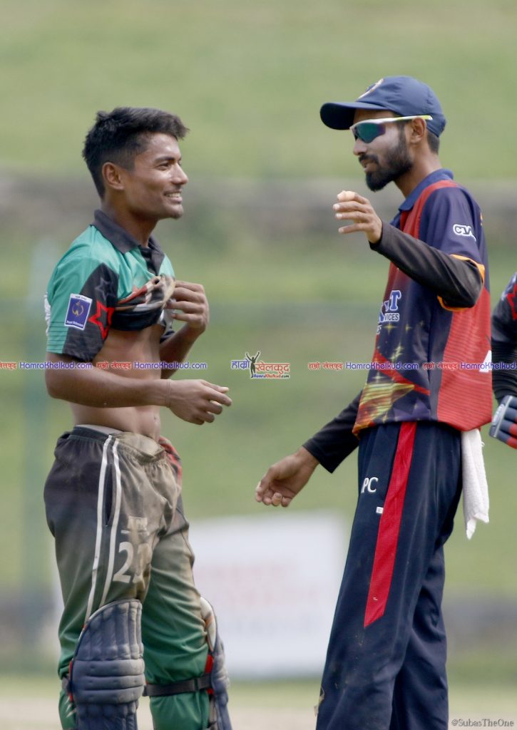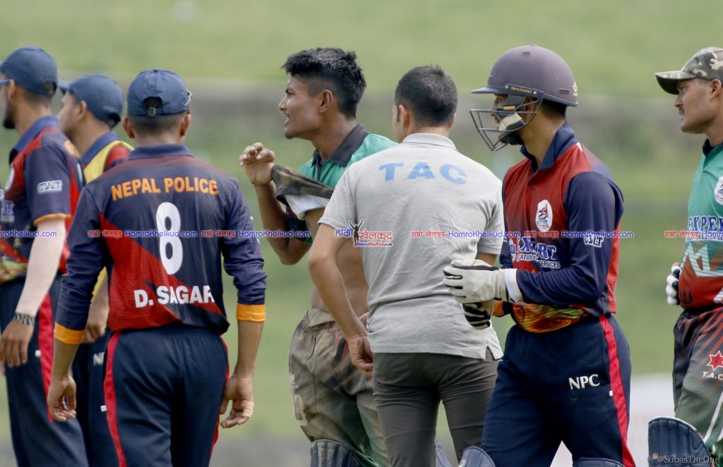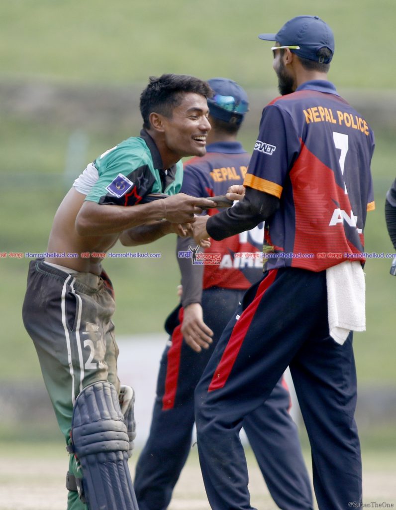 काठमाडौं (हाम्रो खेलकुद) – राजधानीमा जारी प्रधानमन्त्री कप एकदिवसीय राष्ट्रिय क्रिकेट प्रतियोगिताअन्तर्गत शनिबार त्रिभुवन आर्मी क्लब र नेपाल पुलिस क्लब किर्तिपुरस्थित टीयू अन्तर्राष्ट्रिय मैदानमा भिडेका थिए ।