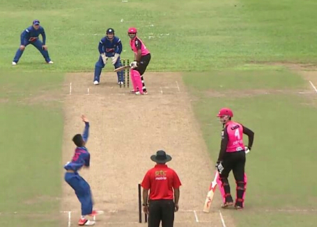 सन्दिपले ३ ओभरमा २७ रन खर्चिदै २ विकेट लिएका छन । २२ बलमा ४० रन हानेका कार्टरको विकेट लिदै सन्दिपले आफ्नो टोलिमा महत्वपुर्ण योगदान दिएका छन ।
