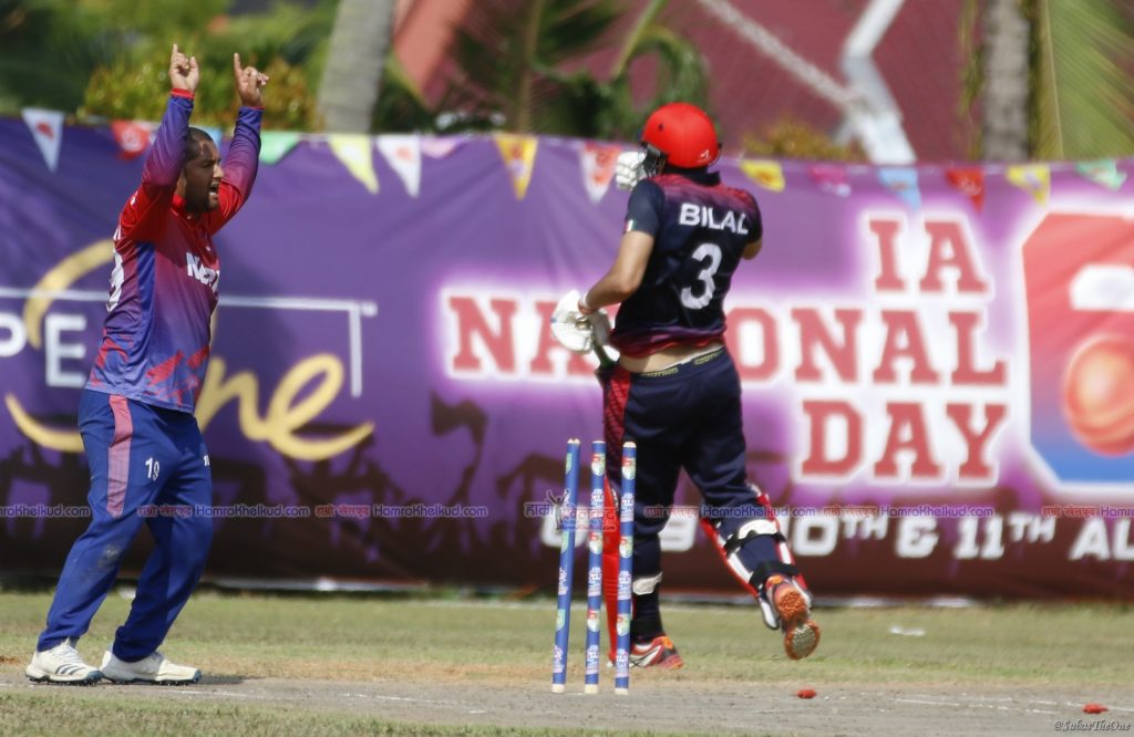 नेपालको सहज जितमा भरपर्दा ब्याट्सम्यान शरद भेषावकरले उत्कृष्ट फिनिसिङ गरे । छक्का प्रहार गर्दै टोलीका जित पक्का गरेका शरदले पारसलाई राम्रो साथ दिदा नेपालले कुनै पनि समय रनमा संघर्ष गुर्न परेन । चौथो ओभरको पाँचौ बलमा ओपनर ज्ञोनेन्द्र मल्ल १९ रनमा क्याच आउट भएपछि तेस्रो नम्बरमा ब्याटिङ गर्न मैदान छिरेका शरदले परिपक्क ब्याटिङ गर्दै पुन उत्कृष्ट फिनिसर रहेको सिद्ध गरे ।
