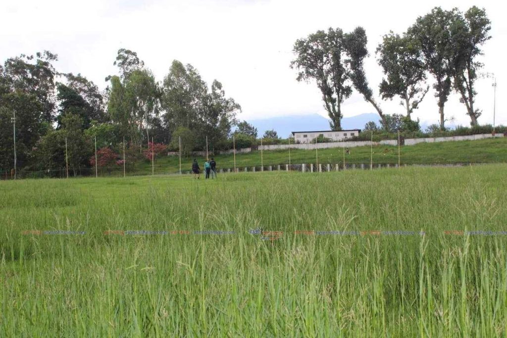 नेपाली सिनियर टोलीको बन्द्र पशिक्षणको क्रममा बिग्रीएको मेसिन अहिलेसम्म नबन्दा घाँस बढेर निकै ठूलो बनेको हो । यसो हेर्दा त घाँसबारी जस्तै देखिन्छ । गत शनिबार राष्ट्रिय खेलकुद परिषदका सदस्य सचिव रमेश शिलवालले टियू मैदानको निरिक्षण गरेर सबै समस्या बुझिसकेका छन् । राखेपले मंगलबारसम्म मेसिन पठाउने भनेपनि बुधबार बेलुकासम्म पठाएको थिएन ।