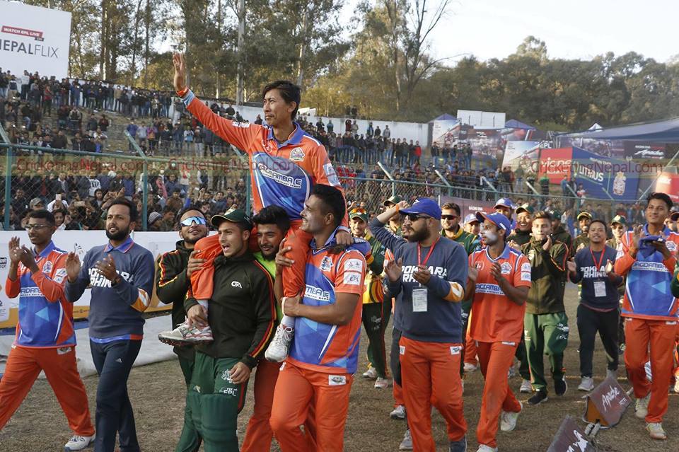 काठमाडौं (हाम्रो खेलकुद)- लुम्बिनी लायन्स पहिलो पटक नेपाल प्रिमियर लिग (एनपिएल) च्याम्पियन बनेको छ। एनपिएल सिजन २ को फाइनलअघि एक मात्र खेल हारेर सुदूरपश्चिमलाई लुम्बिनीले यसपटकको फाइनलमा निरिह बनायो। सुदूरपश्चिमलाई ६ विकेटले माथ दिंदै लुम्बिनी दोस्रो संस्करणको च्याम्पियन बनेको हो। फाइनलमा आज लुम्बिनीको बलिङ नै जितको प्रमुख आधार बन्यो। कप्तान रोहित पौडेलले ह्याट्रिक सहित लिंदा […]