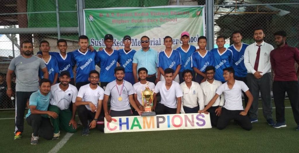 काठमाडौं (हाम्रो खेलकुद) – आयोजक डिएभी सुशील केडिया विश्व भारती स्कुलले तेश्रो सुशील केडिया मेमोरियल अन्तर विद्यालय र कलेजस्तरीय दुवैतर्फ इन्डोर क्रिकेट प्रतियोगिताको उपाधि जितेको छ ।